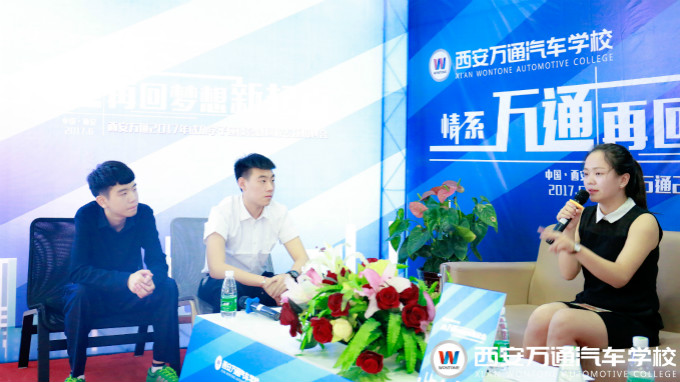 2017年6月26日上午,西安萬通汽車學校邀請到成功學子何麗莎、徐濤、李遠洋、杜鑫再回母校,向2017級的學弟學妹們分享他們的成功經驗。