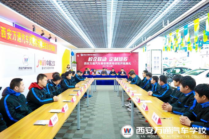 12月1日,校企雙方的相關領導共同出席了西安萬通“汽車美容精英特訓班”的開班典禮,來見證這個新的校企合作班的成立與發展,在典禮上24名學子挺身正坐,精神抖擻。
