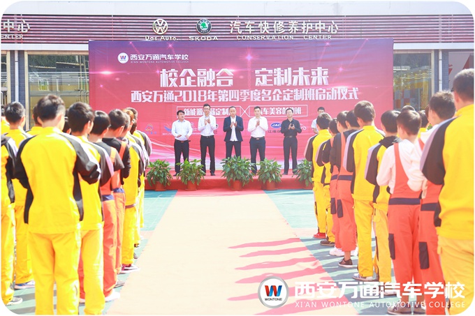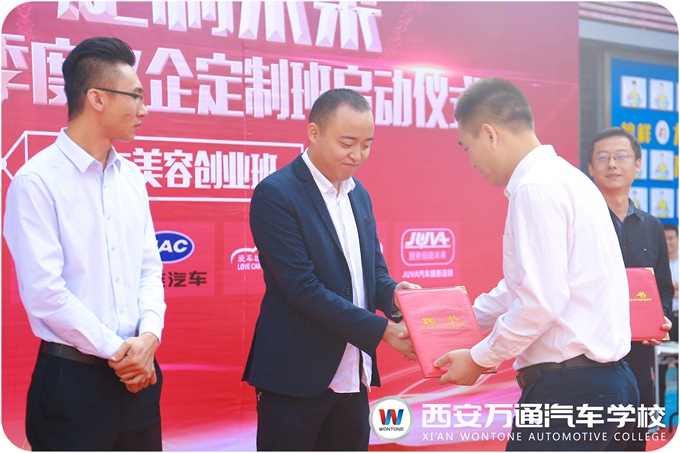 為了適應國家新能源技術發展戰略的宏偉目標,以及為汽車后市場培養更多的創業型人才,2018年9月21日,西安萬通汽車學校隆重舉行了西安萬通2018年第四季度名企定制班啟動儀式,標志著西安萬通“新能源高薪定制班”、“汽車美容創業班”兩個項目正式啟動。