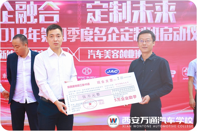 同樣值得一喜的是,江淮4S店與靚車牛人兩家企業為了鼓勵新能源定制班、美容創業班的學子能扎實掌握技能,順利通過企業考核,分別設置了5萬元的企業助學金項目和5萬元的創業基金項目。