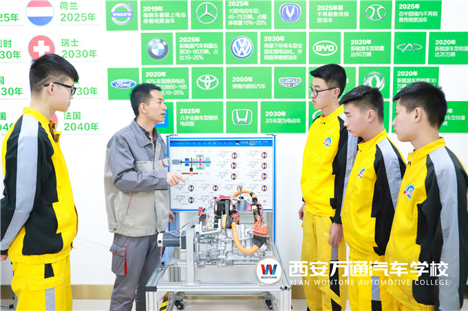 作為國家汽修技術高級人才定點培養基地的西安萬通汽車學校,緊跟時代發展脈搏,積極響應國家新能源技術人才培養號召,斥巨資引進了國內外先進的實訓設備和技術,按照行業標準打造了新能源實訓中心。并通過理實一體化的教學培養模式,系統學習低、高壓電課程、新能源汽車檢測與維修、電動汽車、混合動力汽車等課程,讓學生在理解新能源汽車相關理論知識的同時能實際動手操作,切實掌握新能源汽車維修、檢測、保養技術,讓學子輕松學好新能源汽車技術!