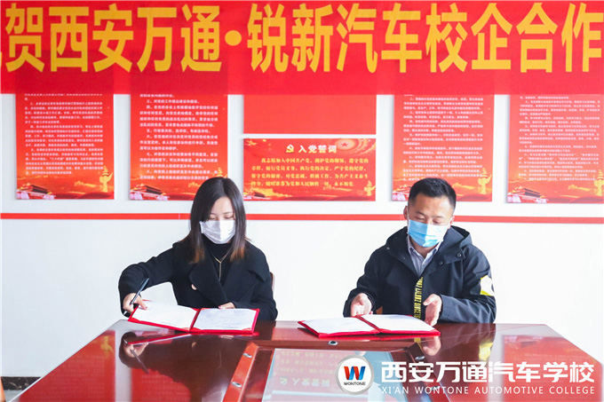 隨后,我校創就業指導中心彭主管和銳新企業總監崔總就未來的合作空間和領域進行深入探討,并順利達成繼續合作的意向。雙方在直播間近千位觀眾的見證下簽訂了2020年校企合作協議。崔總對先萬通汽車學校這些年在人才培養方向所取得驕人成績給予充分肯定,并表示雙方還有廣闊的合作空間,希望借此次簽約與西安萬通開展更深入的合作。