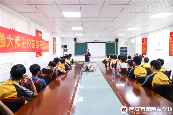 西安萬通汽車學校不僅擁有一支教學經驗豐富、技藝精湛的教師隊伍,建有一流的專業實訓大廳,與著多企業建立良好的合作、交流。學校還經常邀請汽車行業專家學者、4S店技術總監等來校交流、考察、講學,不僅為我校師生帶來行業最新知識,還促進了學校的教育教學水平的提高。