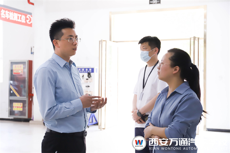 2022年5月4日,比亞迪興迪集團領導一行領導蒞臨西安萬通汽車學校參觀指導,就校企共建、區域合作等方面進行深入交流。