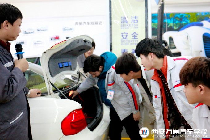 習重交流,技術重實踐。西安萬通汽車學校為了讓學子們全面掌握各種汽修技能,于2017年2月20日特邀寶馬國際認證技術講師盧小健先生親臨我校講學,分別從理論講解和實際操作兩方面為我校學生講解了寶馬汽車的相關技術內容。