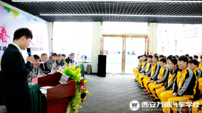 在經驗分享會上,西安萬通成功學子肖楊樂向學子們講述了自己的故事,從當初失學后的迷茫,到來到西安萬通找到自己追求的方向,從對汽修一無所知的懵懂少年,到如今學得精技成為公司里的技術中堅,肖楊樂一路前行,一路成長,終不負自己的抉擇與眾人的期望,同時肖楊樂也希望自己的經歷能為學弟學妹們選擇借鑒,進而成就各自的成功。