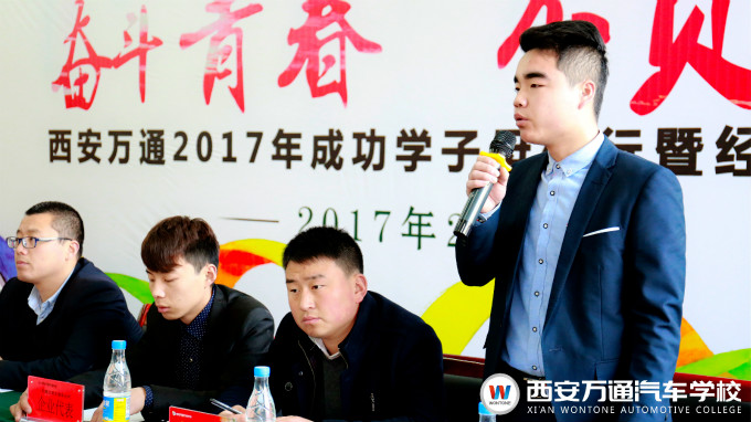 西安萬通培育汽修人才,汽修行業成就汽修精英,而今那些在崗位上獲有成就的西安萬通畢業學子們情系母校,總會抽出時間再回母校,并向在校的學弟學妹們分享他們的成功經驗!2017年2月23日,西安萬通汽車學校就迎回了已畢業一年多的肖楊樂與陳強強同學,并舉行了成功學子經驗分享會。