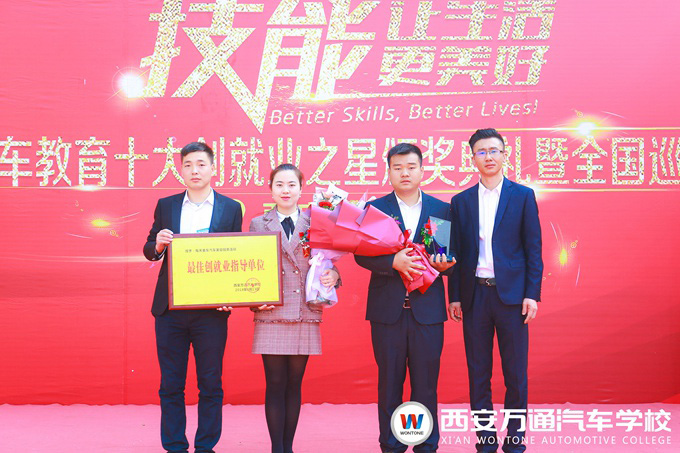 在座談會的最后,李主任分別為每天美車汽車美容服務連鎖頒發了2017年度“最佳創就業指導單位”的獎牌,為陸建駿頒發了“創業之星”獎杯。 至此,萬通汽車教育“十大創就業之星”全國巡講(西安站)圓滿結束,也希望在這個綻放夢想的“雙創”時代,有更多的青年都像陸建駿一樣通過技術創獲美好明天,也能積極促使技術創業成為當下時代的潮流。