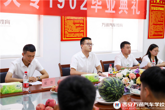 隨后教務處梁主任向優秀畢業生頒發了榮譽證書,激勵他們更上一層樓。西安萬通汽車學校校長助理鄭助向學子們依次頒發了畢業證書,并發表了重要講話。