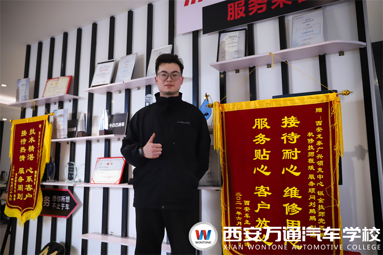 在校期間劉鵬經過“職素+技能+在線投票”層層考核,全國選拔21名極速少年,劉鵬成為其中一名,遠赴世界汽車生產大國——韓國,開啟5天4夜汽車研學之旅,在行走的課堂中學習新知識、收獲新友誼、打開國際視野大門。提及校園生活時,他的語氣變得十分輕快。“自從2019年第一次走進西安萬通校園的時候,就被學校的汽車元素氛圍和學生在整車實訓的場景所吸引。”在校期間“理實一體”教學模式,理論與實踐相結合讓他實踐到:防凍液更換及泄漏檢查、輪胎動平衡檢測、汽車底盤、發動機等的具體操作。一門門實踐課,猶如別在歲月領口上的一顆顆珍珠,不僅裝點了我的回憶,也讓我的汽車技術在學校得到了很高的提升,也是我現在能夠完全勝任現在工作的重要原因。