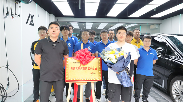 技術引領,市場藍海 徐向潮深知,要在競爭激烈的市場中立足,必須擁有過硬的技術與前瞻性的視野。在多方考察后,他選擇了西安萬通汽車美容學校作為自己技能提升的搖籃。西安萬通,以其雄厚的師資力量、先進的實訓設備以及充足的實訓耗材,在眾多培訓機構中脫穎而出。特別是張軍利老師精湛的技術與無私的傳授,讓徐向潮在短時間內迅速掌握了汽車美容的核心技能,特別是隱形車衣的安裝與保養,為他的創業之路奠定了堅實的基礎。