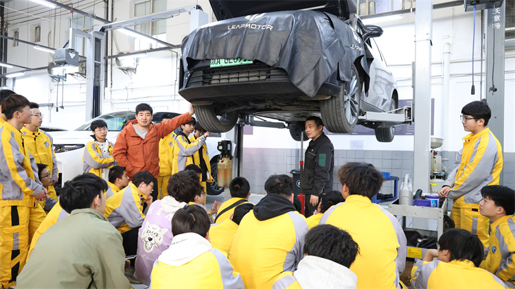 “原來4S店不僅是賣車,還涵蓋金融、保險、上牌、售后等全鏈條服務,這對我們的綜合能力提出了更高要求?!币幻麑W生感慨道。售后車間里,技師們正在熟練地進行電池檢測、系統升級等作業,學生們認真觀摩,并結合在校所學的電控技術知識積極提問,零跑技術主管一一解答,現場互動氛圍熱烈。