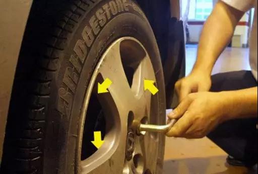 別一上來就把千斤頂先弄上,一定先要用螺絲扳手送送螺絲(是擰松,不是卸下?。?,注意,在松螺絲的時候,要采取對角線逐個擰松的方法,因為這樣才不會使得螺絲、輪胎、輪轂變型!