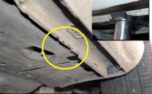 下一步就要使用千斤頂了!千斤頂都是有支撐位置的,一般在車輛中部下方,車輛都會有標注!一般距離輪胎10-15公分!如下圖所示!
