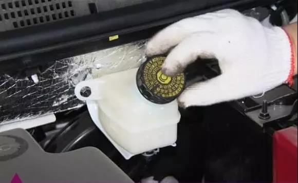 打開發動機蓋子,找到一個括號里有個圓圈的標志,那就是剎車油添加口。由于剎車油的吸水特性,所以使用一段時間后,油水分離,沸點不同,性能就會降低,影響剎車效果。建議每4萬公里就更換一次剎車油。當然根據個人用車情況不同,更換周期可相應縮短。