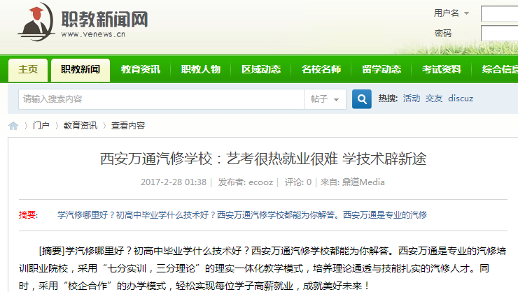 【職教新聞網】西安萬通:藝考很熱就業很難 學技術辟新途