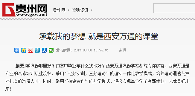 【貴州網】西安萬通汽車學校學汽修技術創業怎么樣