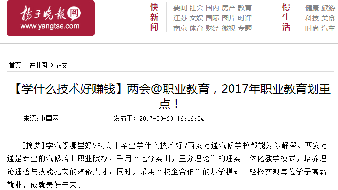 【揚子晚報】兩會@職業教育,2017年職業教育劃重點!