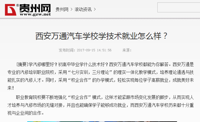 【貴州網】西安萬通汽車學校學技術就業怎么樣?