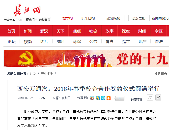 【長江網】西安萬通2018年校企合作簽約儀式圓滿舉行