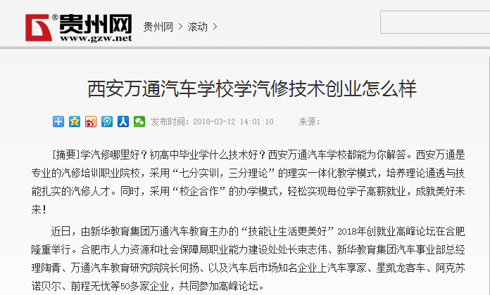 【貴州網】西安萬通汽車學校學汽修技術創業怎么樣