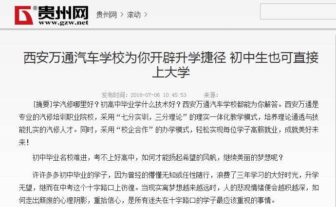 【貴州網】初中生也可直接上大學 萬通為你開辟升學捷徑