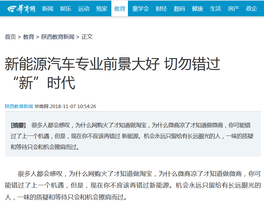 【華商網】新能源汽車專業前景大好 切勿錯過“新”時代