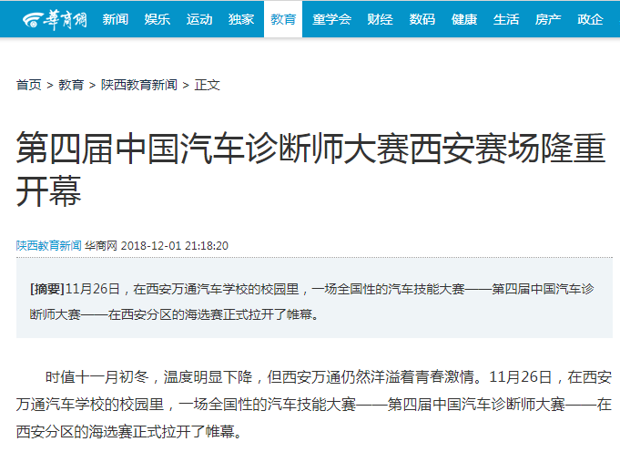 【華商網】第四屆中國汽車診斷師大賽西安賽場隆重開幕