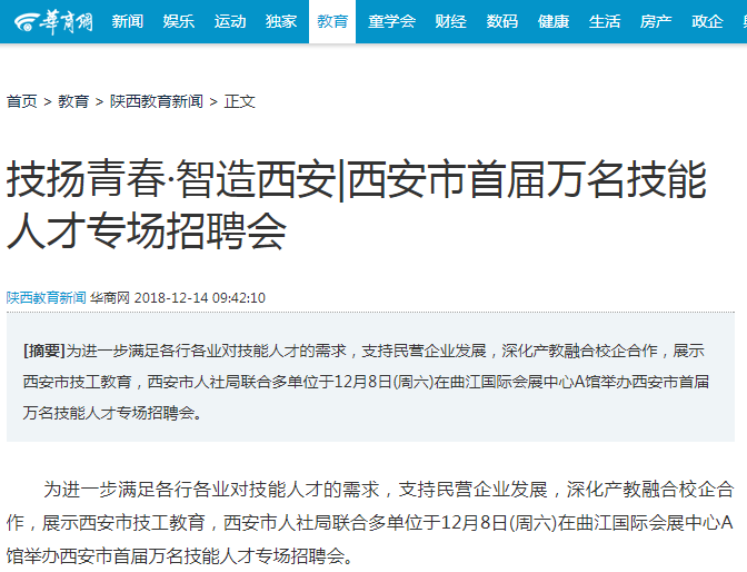 【華商網】西安市首屆萬名技能人才專場招聘會