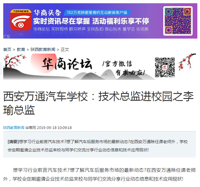 【華商網】西安萬通汽車學校:技術總監進校園之李瑜總監