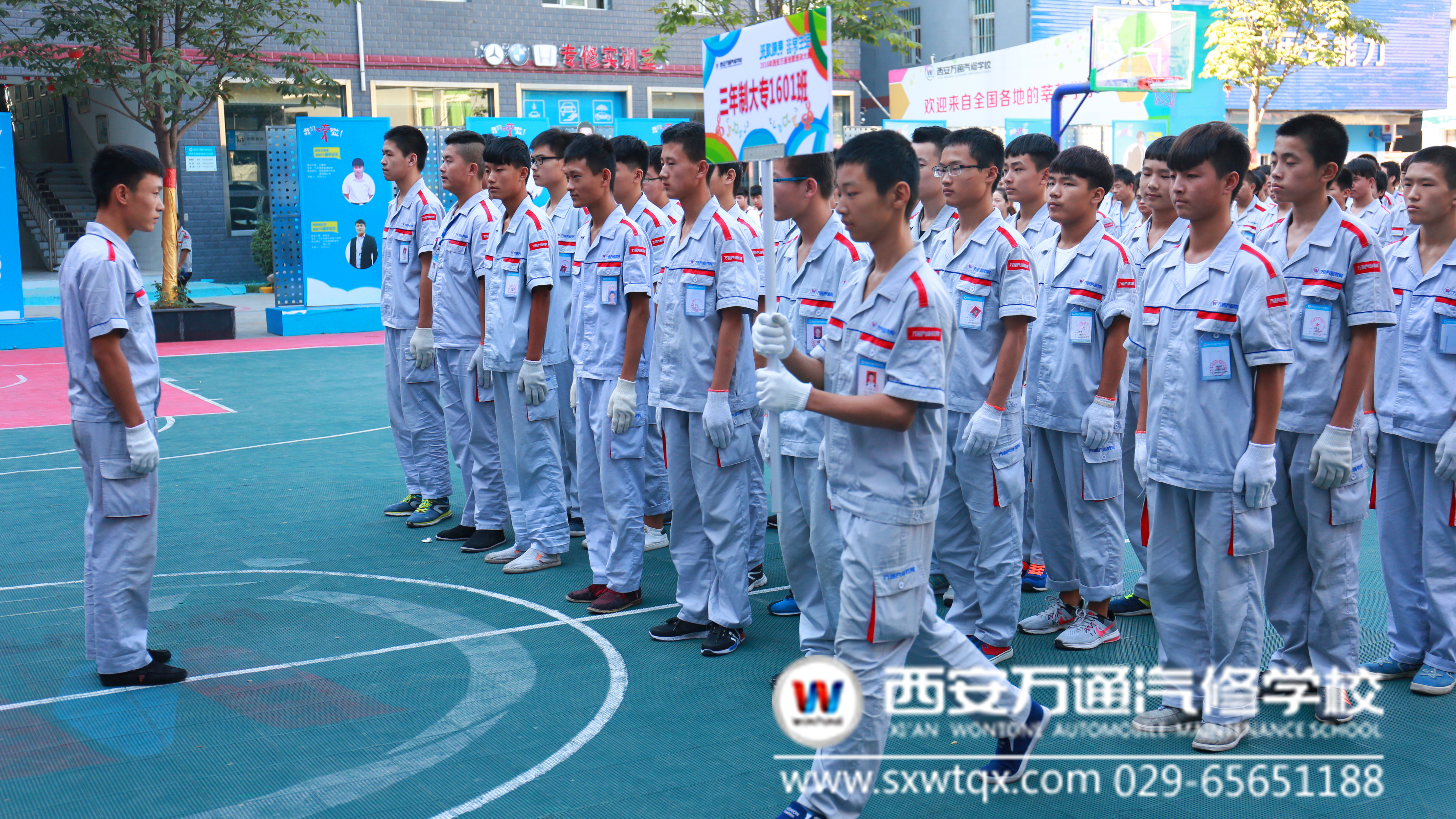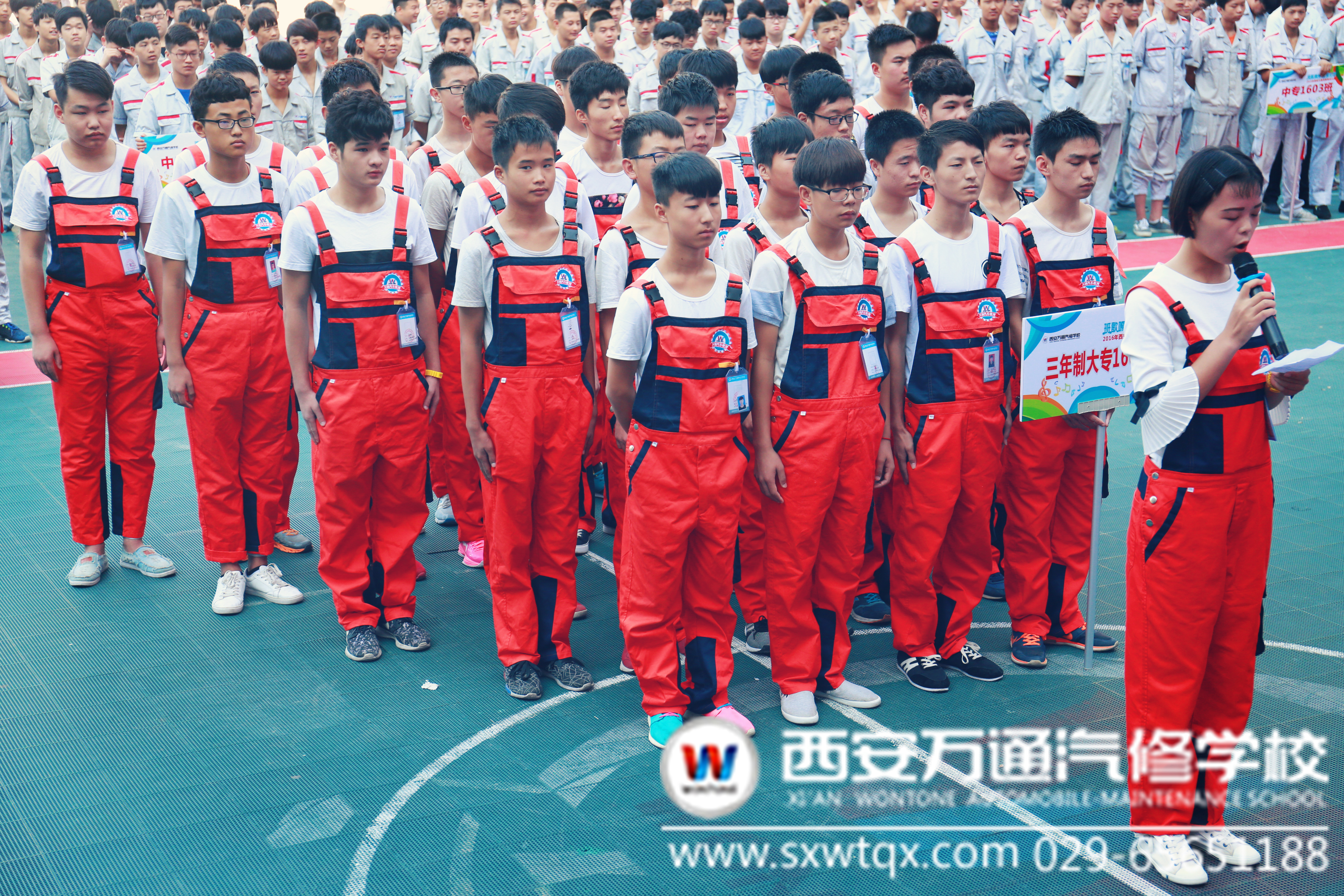 2016年9月1日上午,西安萬通汽修學校成功舉辦了2016年西安萬通宿舍文化節系列活動之班歌班訓大賽。此次班歌班訓大賽一共有8個2016屆大中專班級參加,比賽項目有班訓風采展示和班歌合唱表演兩項。每個班級列隊整齊有序,欲將最好的臺風、最飽滿的精神狀態、最積極的班級面貌、最響亮的歌聲展現評委和觀眾前。大賽的評委席則是由學生處主管鐘鳴、教務處史晗、創就業指導中心郭博聞等7名老師組成。
