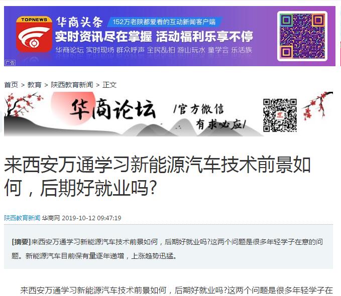 【華商網】來西安萬通學習新能源汽車技術前景如何 后期好就業嗎?