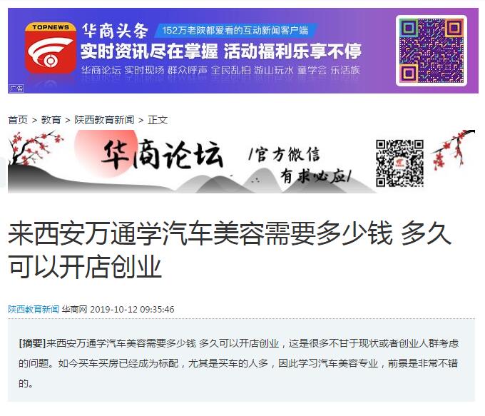 【華商網】來西安萬通學汽車美容需要多少錢 多久可以開店創業