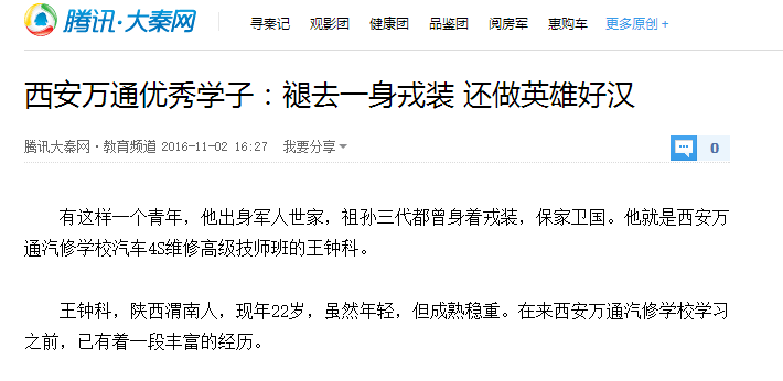 在長三角等地的經歷讓王鐘科明白了一件事,那就是沒技術,就會活得很難。于是就和父親商量自己想學一門技術的事,父親給出的建議就是要學就學在三四十年里都不會淘汰的行業技術——汽修。隨后,王鐘科與父親一起考察了許多學校,最后選擇在西安萬通汽修學校學汽修技術。