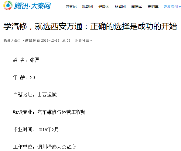 【大秦網】西安萬通汽車學校品牌隆重升級