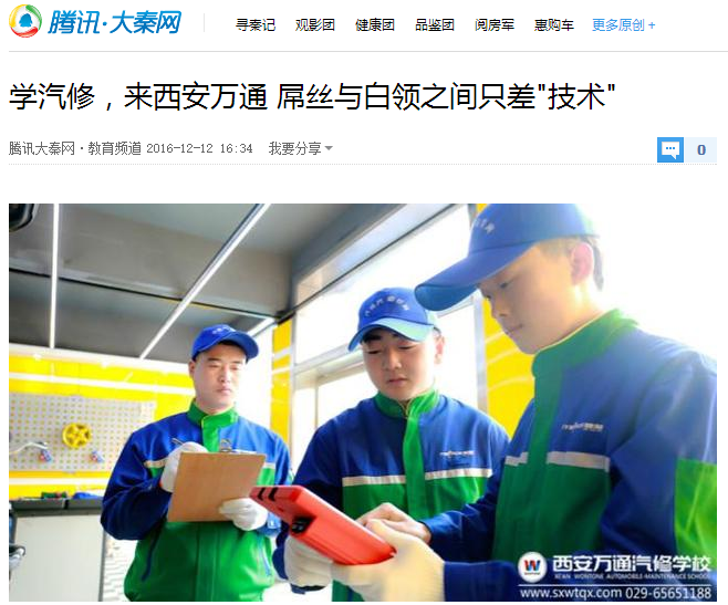 同時,西安萬通獨創教學模式,根據用人單位崗位標準和要求,不斷調整和升級軟硬設施,從嚴把教學關到創新教學模式,再到打造雙師型教師隊伍,西安萬通無論從教學、實訓設備、師資都顯示出同等職業教育的優勢。除了技能專業體系,西安萬通與西安工業大學合作,開創“技能+學歷”培養模式,學子不僅可以學到最前沿、最時尚的汽修技術,同時還可以完成大專乃至本科學歷教育和職業生涯規劃。