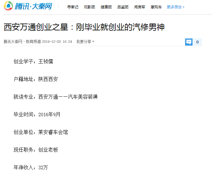 在發展自己事業當中,王禎儒把眼光投到了汽修這一行,因為這一行大有所為。但想要進入這一行,前提是對這一行有個充分的了解,自己不懂怎么辦呢?那就去學校里學。于是,王禎儒果斷決定到西安萬通汽修學校解決這些疑惑。王禎儒說道,來西安萬通自己的目的很明確,即:一、學習扎實的汽車技術,為日后創業時可以把控員工錄用的技術層次服務,同時也可以從學校招聘到一些技術過硬的精英人才;二、深入透徹了解汽車行業的市場走向、創業投資成本等,并利用在業余時間參觀學習成功的汽車美容店的運營模式;三、希望借助學校的力量得到一些技術和人員上的支持和幫扶;四、廣交朋友,融入汽車行業這個圈子。