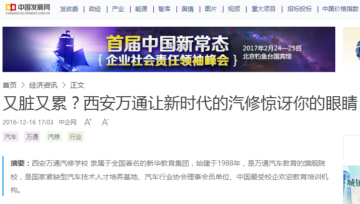 【中國發展網】又臟又累?西安萬通讓新時代的汽修驚訝你的眼睛