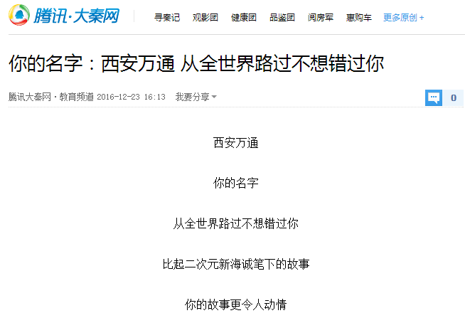 【大秦網】你的名字,西安萬通,從全世界路過不想錯過你