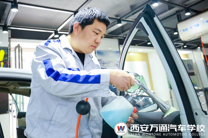 是什么讓牛旭偉決定來西安萬通的呢?這是因為汽車后市場發展迅速,家鄉那邊有好些親朋從事汽車美容快修這一塊的生意,都做的紅紅火火,賺了不少錢?粗鴦e人能夠如此成功,牛旭偉也十分心動,經過多方咨詢對比,最終來到西安萬通進行實地考察,在對學校有一個全面了解后,他做了一個重要的決定:重返校園學汽車美容快修技術,就去西安萬通汽車學校。