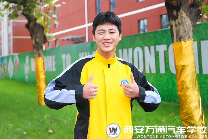 本期新生楊明瞳,來自甘肅慶陽 今年16歲。初中畢業之后,直接選擇西安萬通汽車學校,并報讀新能源專業。因為看好新能源行業,想實現高薪就業,所以選擇西安萬通。