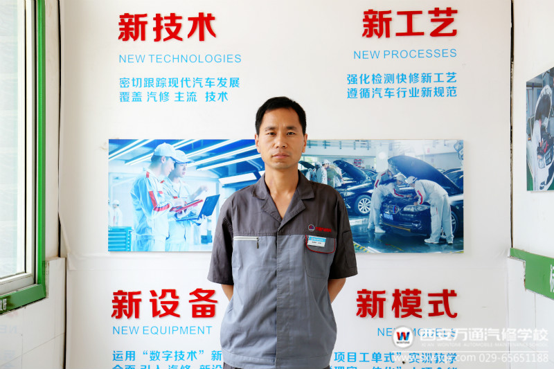 蘇秦嶺老師來西安萬通汽修學校執教之前,在一家大型汽車服務連鎖店里工作,主要負責鈑噴、美容、快修快保等多項業務,經過多年技術經驗的積累,蘇老師在業界取得一致好評,甚有客戶專門奔著他而去。然而,在企業中名聲鵲起的他,卻選擇了轉行。想將工匠精神繼續傳承下去,帶動更多的人來學汽修技術,便轉入了汽修技能教學方向,也算是讓自身的技術發揮出最大的效益。