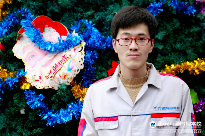 徐日升在西安萬通汽修學校生活學習已有一年多時間了,當初高中畢業后,和親戚一起去天津打工,短短兩個月的時間就使得徐日升領悟到手上掌握一門技術的好處,可以不用受苦受累,不用看人臉色。于是,在高校報名如花如荼的時節,徐日升便放棄了上大學,選擇來西安萬通汽修學校學汽修。