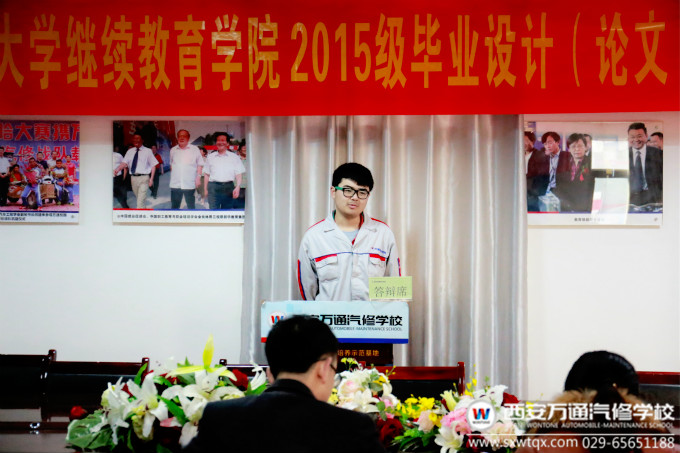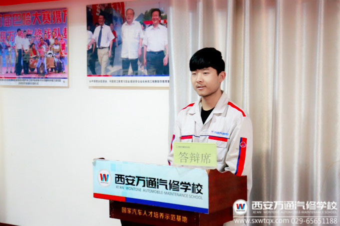 答辯會開始后,學生們按照序號依次走上答辯席,對自己的論文進行簡短陳述并對評委們的提問進行回答。因為西安萬通汽修學校理實一體化教學和提供實習機會等原因,同學們都對自己論文中所涉及到的汽修專業知識掌握得非常好。