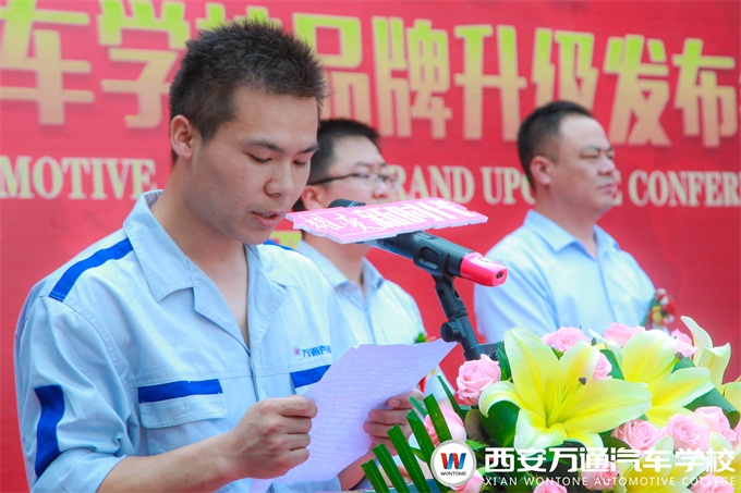 在第七屆“萬通杯”全國汽車維修技能大賽上斬獲全國一等獎的楊龍同學作為學生代表也進行了發言,楊龍講到,在西安萬通有良好的學習環境、負責的教學老師、充足的實訓機會,讓學生能真正學到實戰技能。楊龍同學也向所有同學發乎呼吁,希望每位同學能認真學習,積極實訓,珍惜時間,學有所成,不負學校、老師的鼓舞,不負家人的厚望,不負自己的付出。