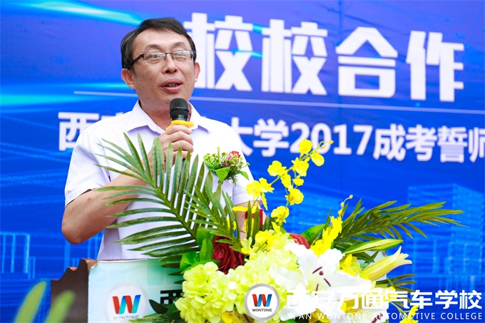 為了做好西安萬通汽車學校2017年學籍注冊考試的前期準備工作,保障參加學籍注冊考試的學子能充分準備,取得滿意成績。8月11日,西安萬通汽車學校舉辦了西安工業大學2017年學籍注冊考試動員會暨優秀教學示范基地表彰儀式。其中,西安萬通方宏剛校長、西安工業大學繼續教育學院洪波院長、西安工業大學繼續教育學院招考辦校江超主任、西安萬通教務處李剛主任等學校領導出席此次大會。