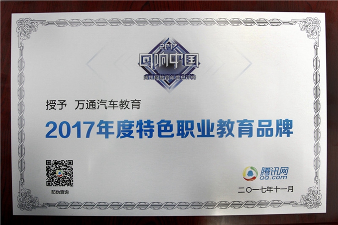 “2017回響中國騰訊網教育年度總評選”獲獎名單在盛典上公布,著名教育品牌:萬通汽車教育、歐米奇西點西餐教育、華信智原教育榮獲“2017年度特色職業教育品牌”,新華學院獲“2017年度品牌實力民辦高校”,新東方烹飪教育獲“2017年度影響力教育品牌”。萬通汽車教育受邀參加此次活動,經過騰訊線上線下百萬評選,榮膺“2017年度特色職業教育品牌”殊榮,響亮全國。