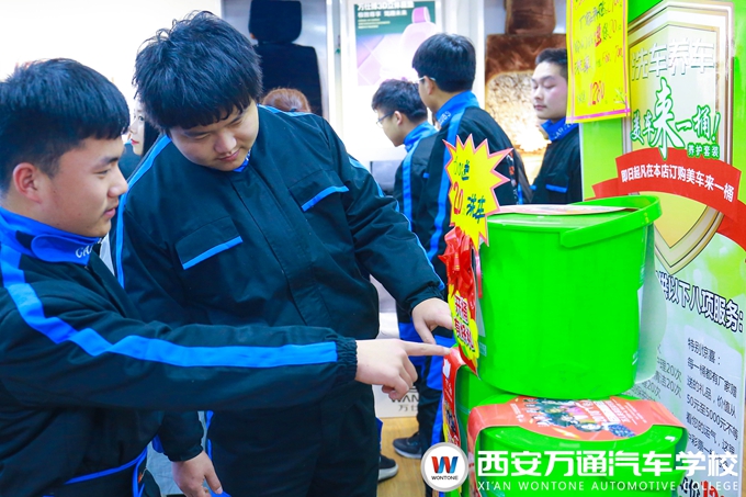 每天美車汽車美容服務連鎖企業是一家以汽車美容快修服務為主的企業。在各功能大廳,得到工作人員的示意后,同學們饒有興致地觀摩著企業的技術人員專注施工,并就自己心中的疑問認真請教這些老師傅。而對于同學們各種問題,企業技術人員也耐心地一一解答,在他們心目中,這些還稍嫌稚嫩的學子將來極有可能成為他們的同事,與他們一同在一線奮戰。因此,對于萬通學子們的到來,無論是哪個部門的工作人員,都表示出了極佳的善意與耐心。