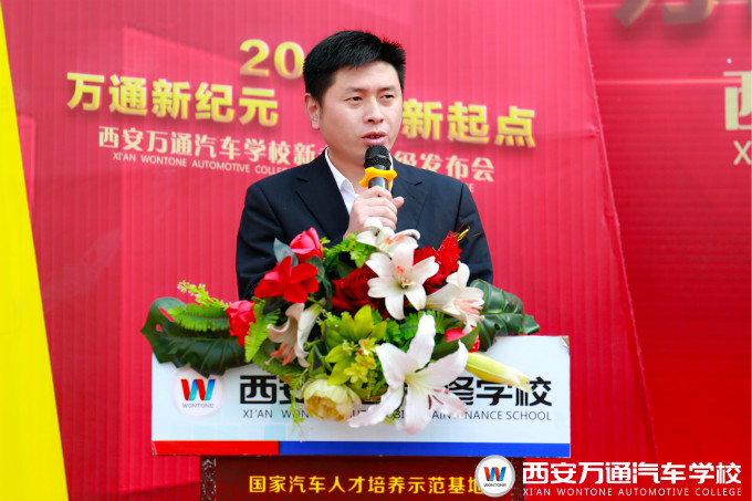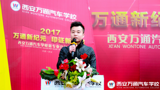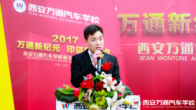 發布會中,教務處李剛主任就西安萬通汽車學校專業設置情況發表講話,李主任提出在過去一年中西安萬通深化教學改革與創新,不斷提高教學質量,目前已有13個汽車相關的短長期專業,在2017年西安萬通新增汽車鈑噴美專業、美容快修專業和二手車評估專業。而且,為強化對汽車人才隊伍的培育,與各大名企攜手開設各類定向班、委培班,其中有奔寶奧名企定制班、卡蘭德名企定制班、美容定向委培班、鈑噴定向委培班等。校企合作強強聯手為西安萬通學子順利就業、實現高薪作出了有力的保障。