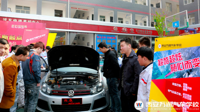 所展示的每項新技術都是其他學校沒有引進的,或是不成熟的,而西安萬通已經將這些新技術列入教學體系,值得一提的是在西北地區的職業院校中西安萬通的輪轂彩印教學是獨一無二的。一位圍觀的學子驚訝的說的:“太刺激的,我還是第一次看到用火燒車,車卻絲毫未損,還有色彩繽紛的輪輞非常漂亮,看了這改裝車我都想著學好技術后,也為自己改裝一輛。”